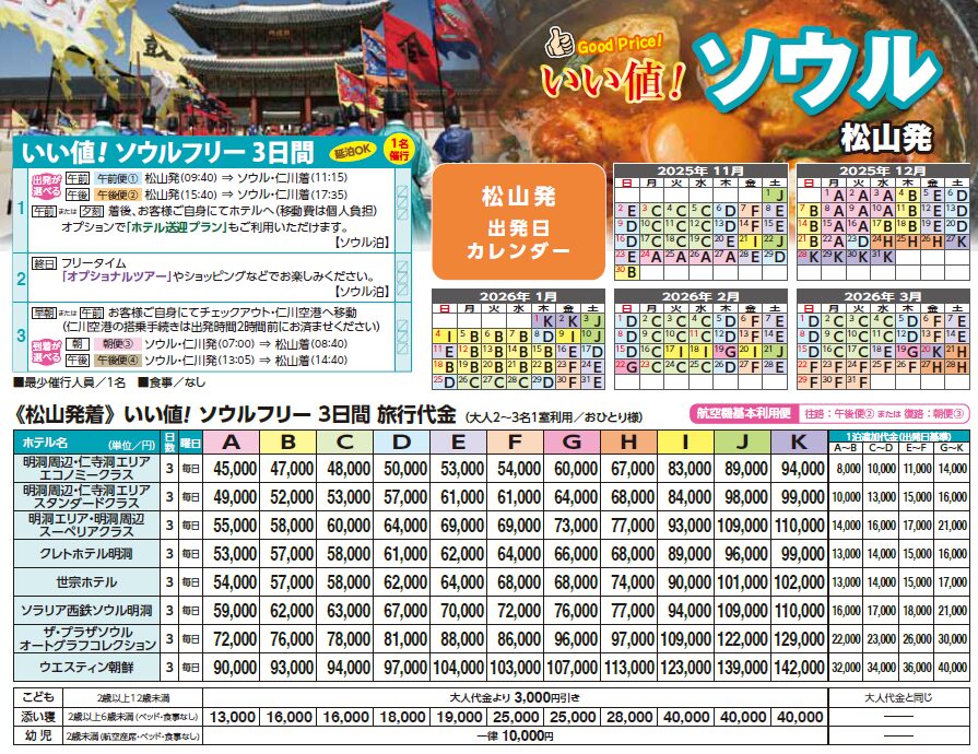 「松山発着・チェジュ航空で行くソウル3日間」のお申込みを受付中です。