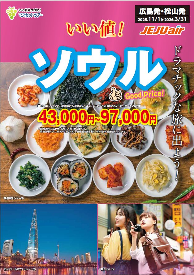 「松山発着・チェジュ航空で行くソウル3日間」のお申込みを受付中です。