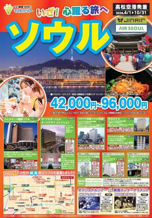 「高松発着・ジンエアー / エアソウルで行くソウル3日間」のお申込み受付中です。