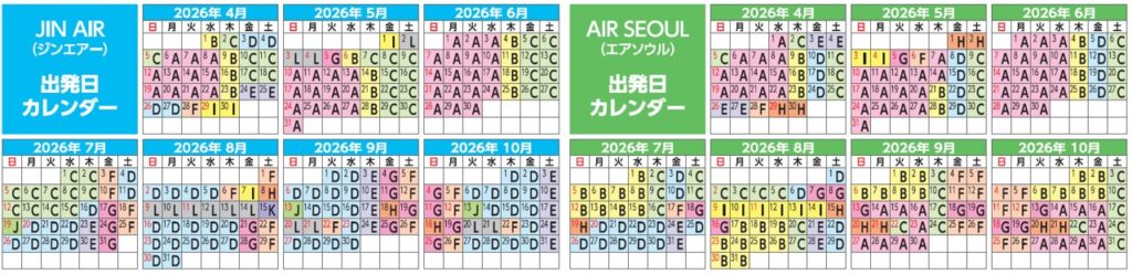 ※往路復路とも同じ航空会社でのご利用となります。例)往路ジンエアー×復路エアソウルなどの組み合わせはできません。